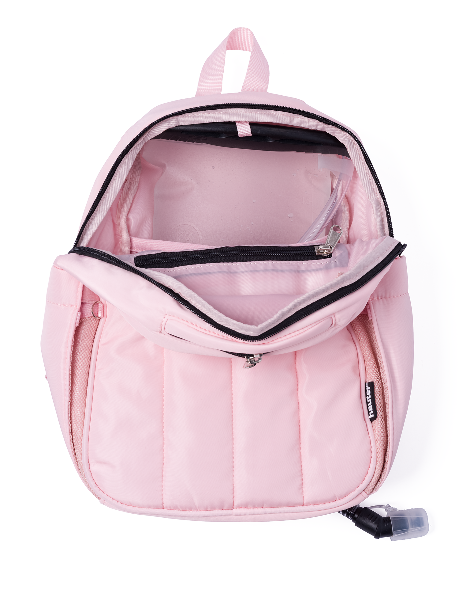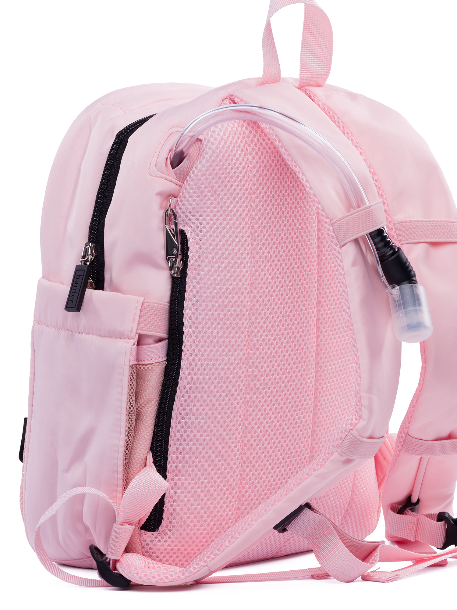 Pack our hydration backpack with all the essentials: water, phone, wallet, makeup, sanitizer, warm layers, snacks, and shoes (yep, some of our customers fit a change of shoes in their backpacks!)